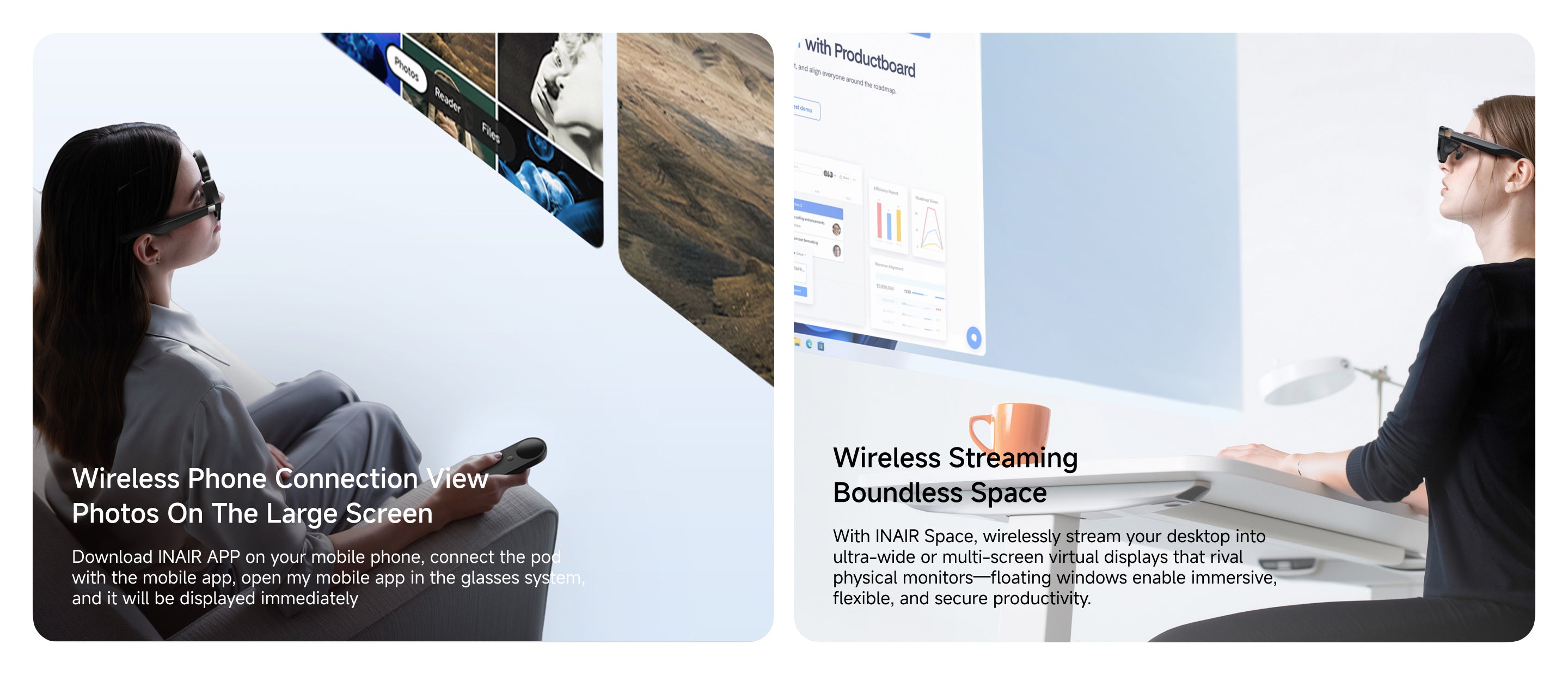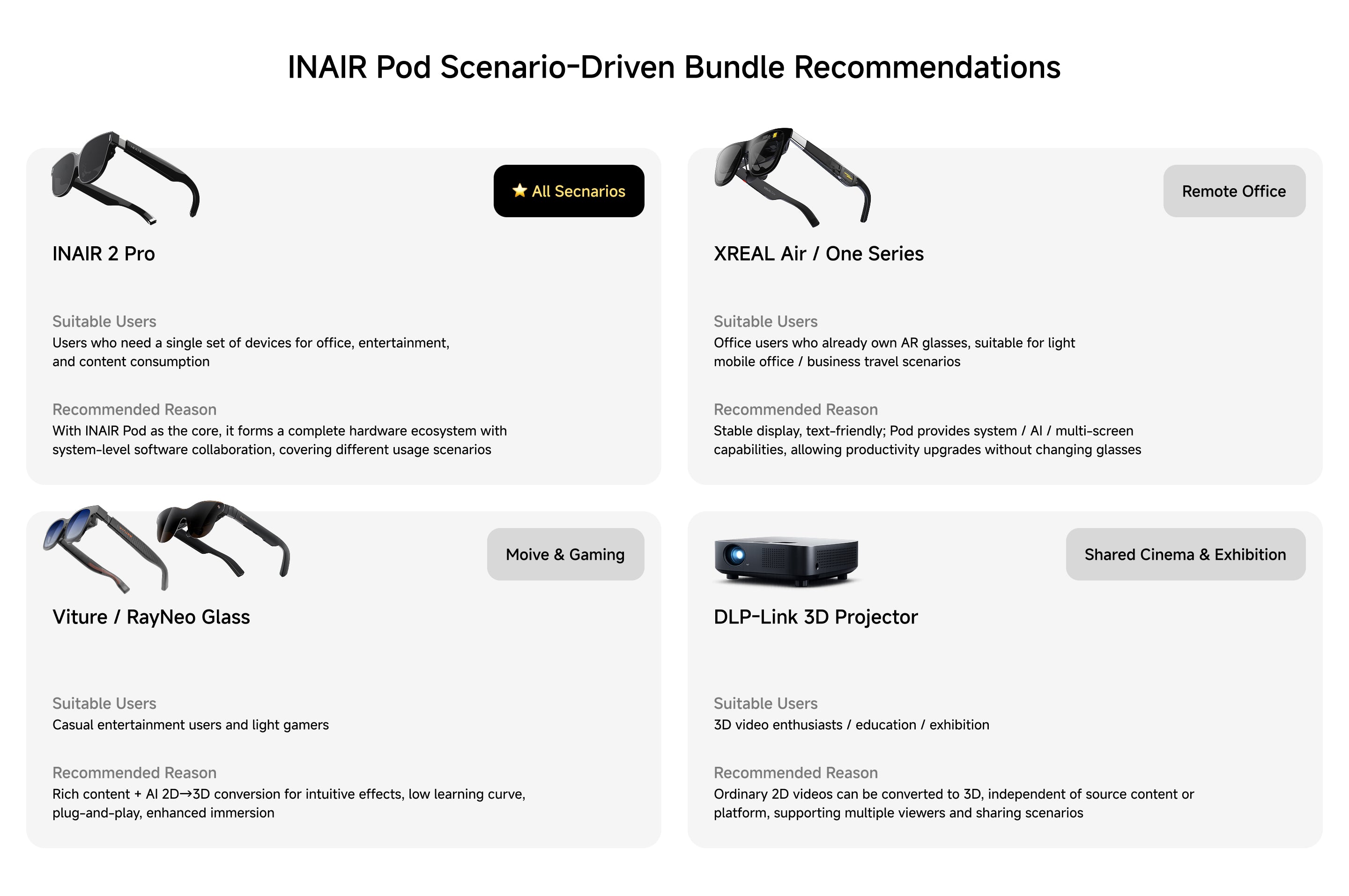 The INAIR 2 Pro Set includes the INAIR Pod, which runs on its own Android-based system. You can use it directly with the glasses — no phone or computer required — and it supports a wide range of Android apps for an all-in-one AR experience.