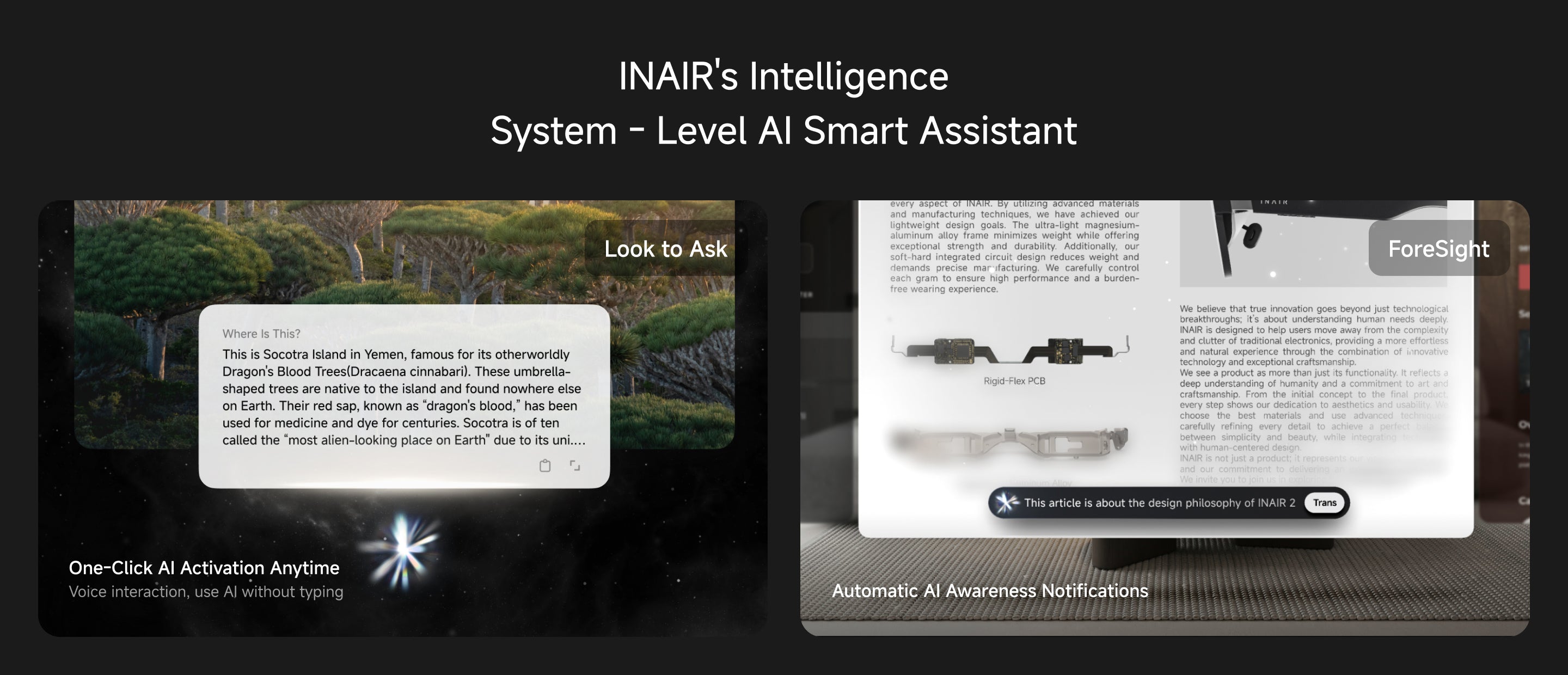 The INAIR Pod is a revolutionary smart terminal designed for the AR experience. It combines powerful computing, independent power, and intuitive interaction, allowing you to activate your virtual world instantly, anytime, anywhere.