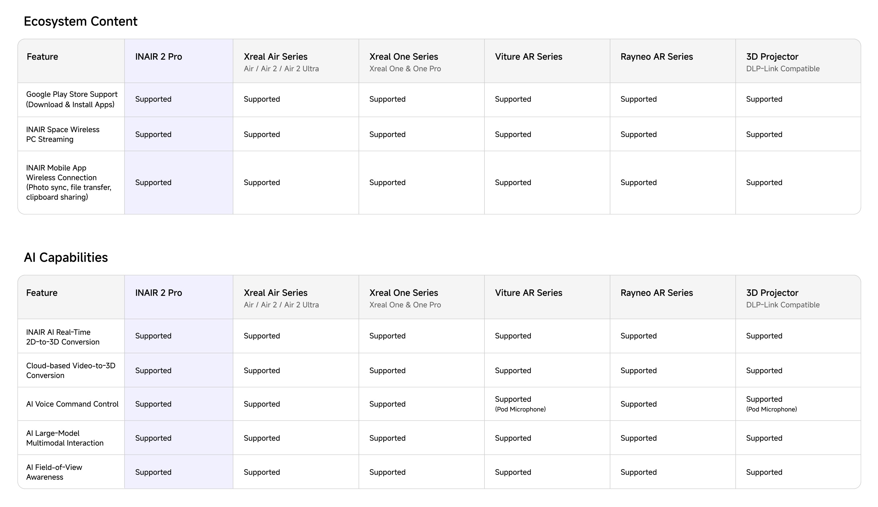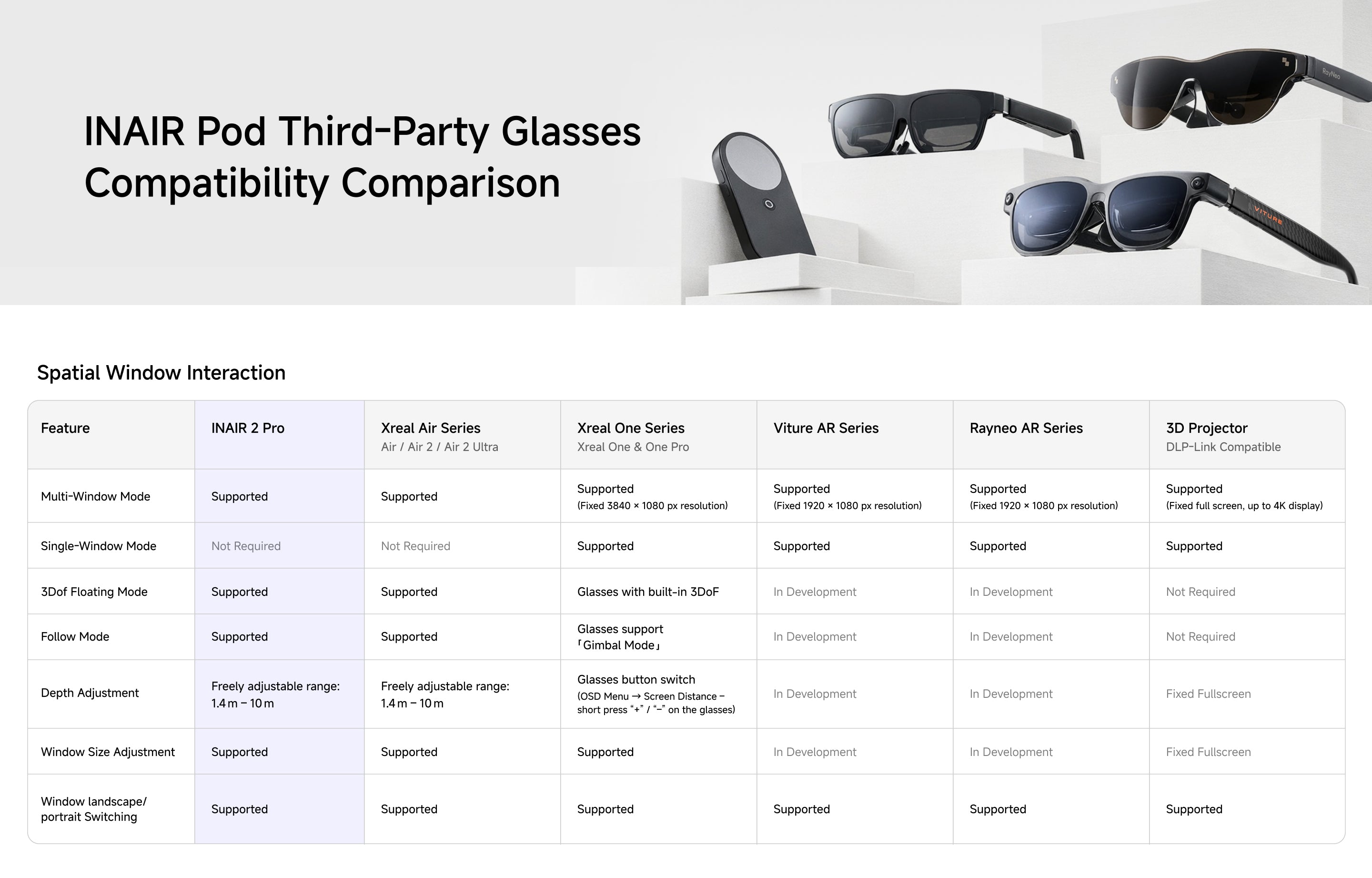 Is the INAIR Pod compatible with other AR glasses brands such as XREAL, VITURE, or ROKID?