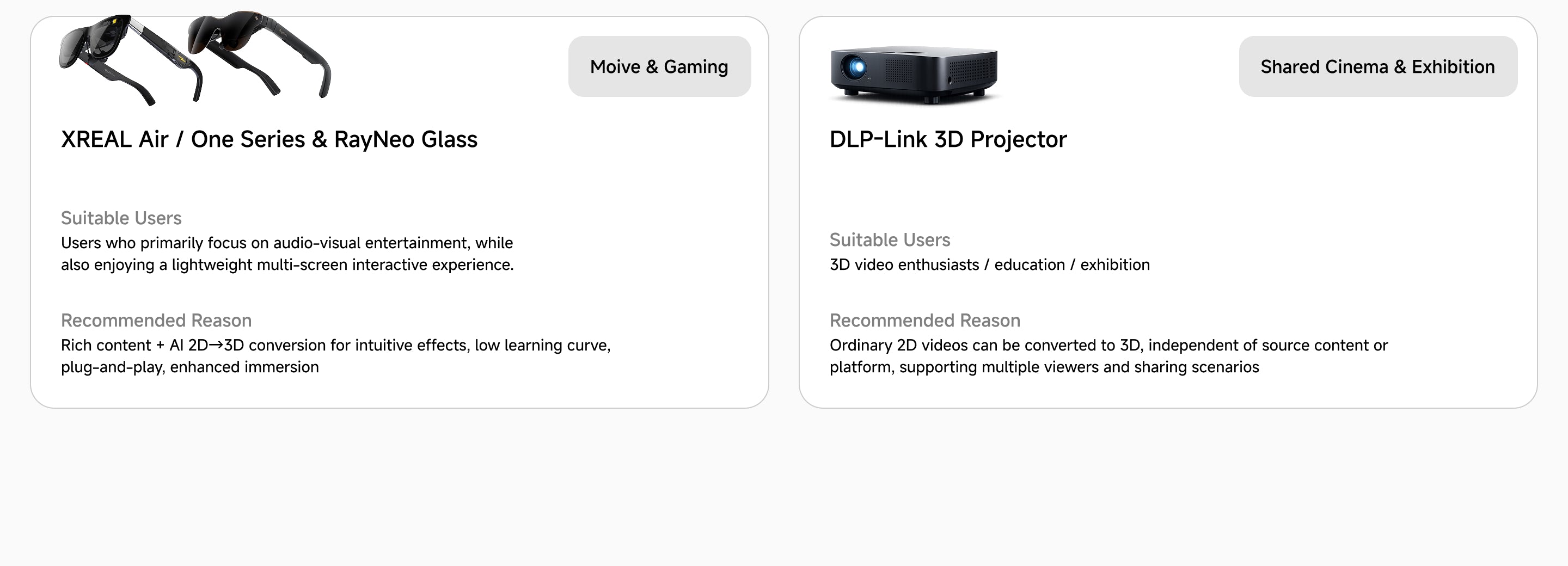 Compatible With Mainstream Third-Party AR Glasses:Bring your AR glasses back to life-enjoy 3D TikTok videos and short 3D shows effortlessly.